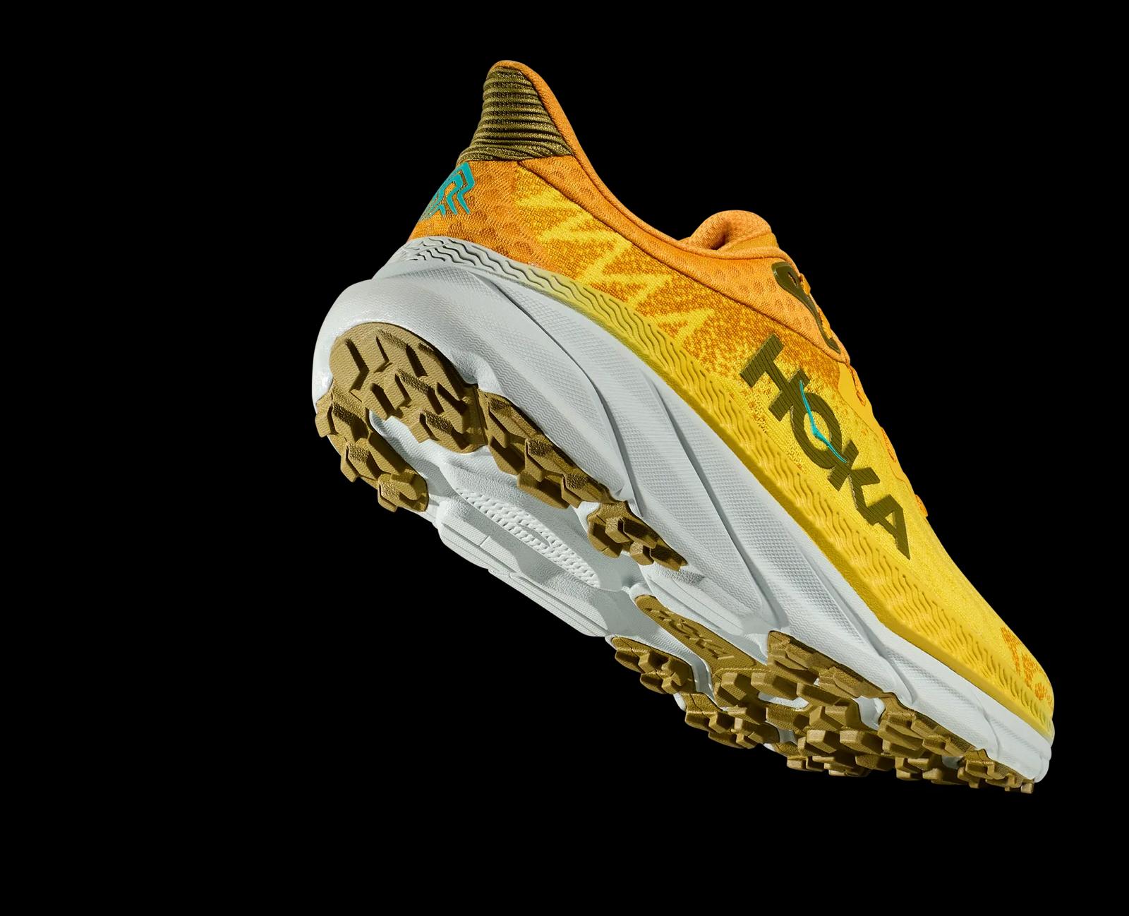 CHALLENGER 7 מציבה גבולות חדשים לקונספט נעל ריצה משולבת: יש לה ביצועים נהדרים בכביש והיא צולחת מכשולים בשטח. CHALLENGER 7 קלה יותר מקודמתה ב- 27 גרם, ועם סוליה עבה יותר ב- 2 מ״מ נוספים המעניקים שיכוך ובלימה גבוהים מאוד, וכל אלה, במעטפת יצור מחומרים טבעוניים וממוחזרים. הנעל ניטרלית, דינמית ומהירה, מעניקה תמיכה טובה, ומתאימה מאוד לרצים הזקוקים לנעל וורסטילית לתנועה ללא מגבלה בכל תוואי שטח. בשטח, CHALLENGER 7 מתאימה לכל סוגי הקרקע: סלעים, אבנים, כורכר, שדות, חול, בוץ ומעברי מים. בכביש, מתאימה לריצות נפח, טמפו, וריצה על משטחים רטובים וחלקים. עקב הנעל מחוזק ותומך בכל מנחי הדריכה. הסוליה בנויה מ- EVA דחוס וממוחזר לאחיזת שטח מוגברת, שיכוך גבוה והחזר אנרגטי יעיל. בחלקה החיצוני של הסוליה יצוקים זיזי גומי חדשים בעובי 4 מ"מ לאחיזה מיטבית בכל תוואי. CHALLENGER 7 נושאת את דגל המיחזור. הגפה שלה עשויה מסיב: recycled Unifi REPREVE® yarn. סיב זה מיוצר מפסולת פלסטיק ממוחזרת, והתוצאה היא אריג דו שכבתי חזק, בעל יכולת אוורור ונידוף מעולים. זוהי הנעל המנצחת שלכם בכל מקום ובכל תוואי שטח.